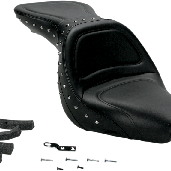 Caracteristicas: Designed and contoured for two-up touring comfort; match all studded saddlebags and luggage Split-cushion design separates seating surface from lumbar support, reducing tailbone and back pressure SaddleGel™ in both driver and passenger areas increases comfort during trips of any length Supple SaddleHyde™ offers a combination of comfort, glove-soft leathery feel and weather-resistant, no-maintenance good looks Also feature 1/2" chrome-plated brass studs that follow a special stitch pattern Made in the U.S.A.
