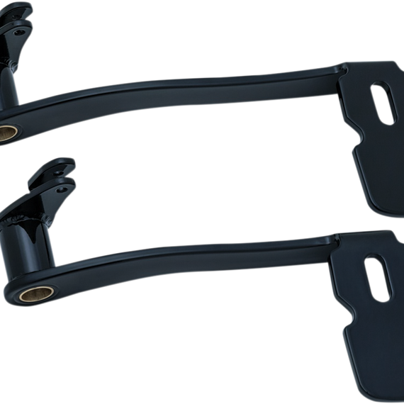 Caracteristicas: Moves the brake pedal location forward and down while flattening the angle of the pad Eliminates your foot being "under" the brake pedal, for a more natural feel when moving your foot from the floorboard to the brake pedal Polished, chrome-plated finish Bronze bushing with grease fitting for long life For use with floorboard-equipped bikes Compatible with engine-guard mounted cruise pegs and Küryakyn's Cruise Arm Mark III (adjustment range of Cruise Arm Mark III may be slightly reduced)