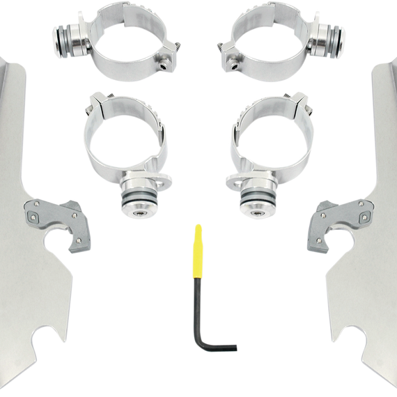Caracteristicas: Angle Adjustable Model specific no-hassle installation, then on-off without tools A pair of glass-filled nylon latches lock it down until the spring loaded "Trigger-Locks" are intentionally disengaged Made exclusively of electrocoated aluminum and stainless steel, with stainless steel fasteners Anchoring hardware is the same for all windshields and fairings for each bike Made in the U.S.A.