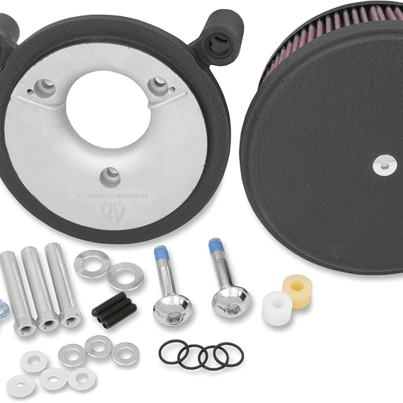 Caracteristicas: Features a one-piece aluminum backing plate/carb support bracket with patented hidden breather technology and radius air inlet Breather passages exit at the mouth of the carburetor/throttle body, creating a virtually closed-loop system Kit includes a 20% larger high-performance filter and steel outer cover Eliminates the need for banjo fittings, hoses and filter All necessary hardware and instructions are included Includes Standard pre-oiled filters Made in the U.S.A.
