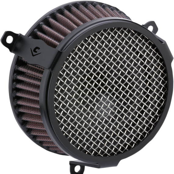 Caracteristicas: The Cobra system consists of a laser-cut, formed steel cover, separate mounting ring, and all the fasteners, seals, backing plate and mounting hardware for easy installation Flows better than stock or competing units, in large part because of the unique internal venturi design of its inner filter High-flow K&N® Air Filter element ensures the maximum air intake and protection Slim profile keeps the unit away from the rider's leg Formed stainless steel mesh insert Optimizes overall performance Made in the U.S.A.