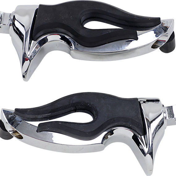 Caracteristicas: Flame design adds timeless style Chrome bodies with rubber flame inserts provide comfort and help isolate the foot from vibrations