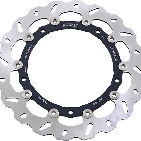 Caracteristicas: Laser-cut double disc ground 420 high carbon stainless steel Direct-replacement brake rotors; do not require any extra parts, bolt on just like a stock brake disc Full-floating design rotors have an aluminum center carrier Improves brake lever feel and modulation Rotors cool as they rotate to lower brake operating temperatures Design is self-cleaning, removes water as it rotates Less tendency to warp Manufactured in Spain For maximum braking performance and rotor longevity, Galfer recommends using Galfer brake pads with Galfer rotors.