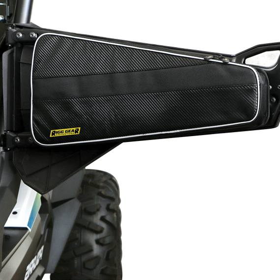 Caracteristicas: Mounts using front factory door holes and included fasteners Front knee pad for comfort and safety is also removable to maximum storage One large zippered storage compartment Top-quality UV-treated and water-resistant Tri-Max? ballistic nylon with Fibertech accents Reverse coil zippers help keep out dust and dirt Rubber-coated oversized zip pullers operate easily with gloves Dimensions: 23.5" L x 11" W x 2" H Holds 4.5 liters per side Can fit 50" trail models if additional hole is drilled
