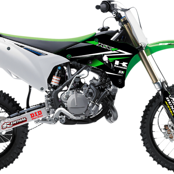 • Includes graphics kit for radiator shroud, lower forks, swingarm, front and rear fender