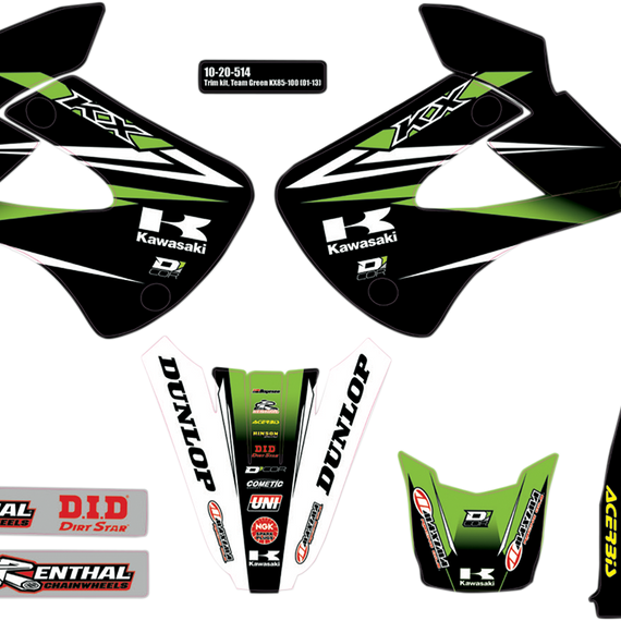 Caracteristicas: Includes graphics kit for radiator shroud, lower forks, swingarm, front and rear fender