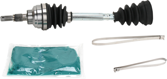Caracteristicas: High-quality OEM replacement shaft; assembled and ready to install using existing inboard joint Complete wheel shaft kit includes complete axle (outboard joint, inboard joint, or inboard u-joint, boots clamps and grease) Half wheel shaft kit includes outboard joint, shaft, inboard boot clamps and grease Made in the U.S.A.