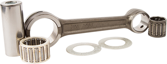 Caracteristicas: Heavy-duty OE replacement connecting rods Certified 8620 AISI steel provides superior strength Crankpins are manufactured from hot-rolled ASTM 4115 and case hardened to 58-62Rc Feature the latest in caged needle roller bearing designs for high rpm longevity Uniquely designed big end uses strategically located side scalloping and vent slots to minimize bearing race distortion at high rpm Small ends are double drilled to supply extra lubrication and cooling to the wrist pin bearing, which is especially important when the piston crown is close to the wrist pin bearing Shot-peened to eliminate surface stress risers and to smoothly blend together the rod forging's radiuses Double honing produces an ultra-round bearing surface for reliability at high rpm Most rod assemblies are sold complete with rod, crank pin, crank pin bearing, top-end bearing and silver-coated bronze phosphor thrust washers Compatible with Hot Rods and OE crankshafts Made in U.S.A.; connecting rod manufactured at Hot Rods Iowa facility