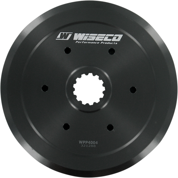 Caracteristicas: Forged from lightweight aerospace-grade aluminum alloy; CNC machining ensures each clutch basket is identical to the next Weight-saving relief cuts on outside of clutch reduce rotational mass, allowing engine to rev quicker Large oiling holes increase lubrication and reduce heat buildup PTFE coating makes for a near-frictionless surface