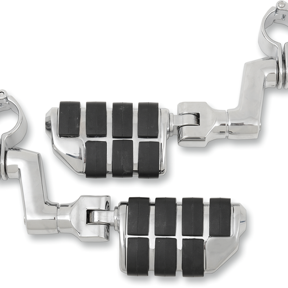 Caracteristicas: Offset mounts with small or large ISO®-pegs and 1-1/4" Magnum Quick Clamps Clamp can be positioned forward or back, and the arm offers full 360° rotation for tall, sort or in-between riders Durable ISO rubber inserts for grip and vibration dampening Fit 1-1/4" engine guards or tubing All necessary hardware included