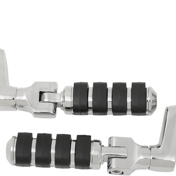Caracteristicas: Offset mounts with small or large ISO®-pegs and 1-1/4" Magnum Quick Clamps Clamp can be positioned forward or back, and the arm offers full 360° rotation for tall, sort or in-between riders Durable ISO rubber inserts for grip and vibration dampening Fit 1-1/4" engine guards or tubing All necessary hardware included