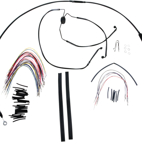 Caracteristicas: Complete installation kit for Burly Ape hangers Kits include extended brake line (unless noted), extended clutch cable/clutch line, extended throttle/idle cables as required and all necessary wiring Brake lines, when included, feature PTFE inner liner and heavy-duty stainless steel outer braid Dresser kits reuse stock Throttle-By-Wire harness Kits are based on using 2" risers with ape hanger-style handlebars