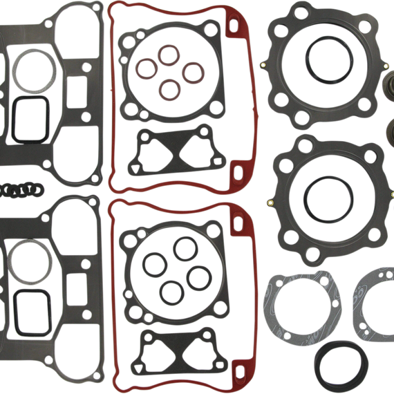 Caracteristicas: EST (Extreme Sealing Technology) gasket kits include embossed stainless steel head, base, and rocker gaskets covered with a proprietary rubber material Head gasket material allows heat to be drawn away from the combustion ring and dissipated evenly across the gasket surface to eliminate hot spots and gasket failure Sets contain all the necessary gaskets, seals, and O-rings to rebuild the top end from the cylinder base upward Made in the U.S.A.