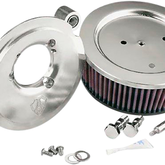 Caracteristicas: Each hidden breather is O-ringed at the heads and exits at the mouth of the injector/carb to provide efficient engine breathing, eliminating the need for any external hoses or hardware Standard red filters are pre-oiled, washable and feature four layers of surgical grade cotton for optimum filtration and maximum airflow Synthetic filters feature a black synthetic material that is water resistant and never needs to be oiled; just wash and re-use Stage II kit features a 20% larger filter element and accepts an 8" round Ness outer cover only Radius air inlet provides maximum performance by providing unobstructed airflow One-piece aluminum backing plate features patented hidden breather technology All necessary hardware and instructions are included with each kit