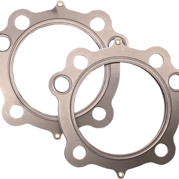 Caracteristicas: Center or shim layer is uncoated stainless steel, which can be varied to accommodate multiple thickness requirements Outer layers are embossed and coated on both sides with Viton to meet the demands of a variety of harsh sealing environments, load conditions, and surface finishes MLS (Multi-Layer Steel) head gaskets promote an even torque load across the gasket sealing surface utilizing LCE (Load Control Embossments), providing less bore distortion and better piston ring seal for more power Made in the U.S.A.
