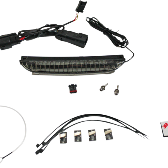 Caracteristicas: This quick addition to the luggage rack adds an additional running and brake light that demands attention! Dual-intensity super bright 5mm LEDs are sealed behind a red or smoked lens The unit is installed with provided mounting hardware to the underside of the luggage rack placing this light bar right at eye level to the traffic behind you Plug and play with provided mounting hardware