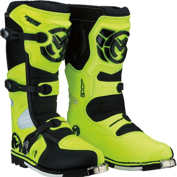 Caracteristicas: Chassis is constructed with polyurethane coated synthetic leather that is abrasion resistant and flexible Reinforced TPU shin, ankle, and foot plates are engineered to improve stability without sacrificing mobility Low profile compact lower toe box improves brake feel and ability to shift Integrated internal lace loop system secures foot and increases ankle stability Heavyweight suede leather inner calf guard improves abrasion and heat resistance Rigid steel shank reinforced sole eliminates flex and provides superior foot support Polyurethane plastic closure strap with metal buckle is adjustable and secure Internal soft EVA foam reinforced in impact areas improves comfort Multi-layer synthetic rubber outsole is long lasting and provides superior grip Polyester inner lining wicks moisture