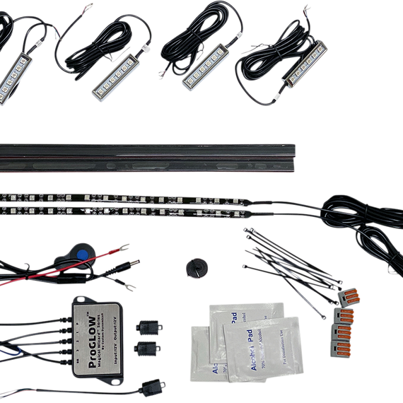 Caracteristicas: 60" wire leads that can be cut to length for a custom installation without any excess wire under the seat Each Magical Wizards™ light is wired independently to the included ProGLOW™ Bluetooth Controller for Magical Wizards™ Includes installation supplies and quick connectors Includes two 15 LED strips and four 6 LED pods Universal, 12 VDC systems
