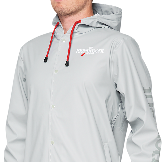 Caracteristicas: 100% Polyurethane Jacket Adjustable hood with drawcord Welt body pockets Cape back vent with snap for increased breathability Adjustable hem with drawcord Front placket with snap buttons Screen printed logos