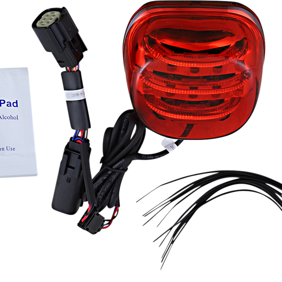 Caracteristicas: Simple solution to add a third brake light to the rear fender The Low-Profile taillight design protrudes only two inches from the fender for a sleek custom look Modern LED light pipe design with three running light pipes Three running LED light pipes illuminate across the taillight as a running light with 10 full intensity brake LEDs Completely sealed unit mounts with double-sided tape to the rear fender and wires route behind the Turn Signal Eliminator bracket Compatible with parts 2040-2335, 2040-2336, 2030-1453, 2030-1498, 2030-1497, 2030-1496, 2030-1495 (sold separately) Plug and play, no drilling required