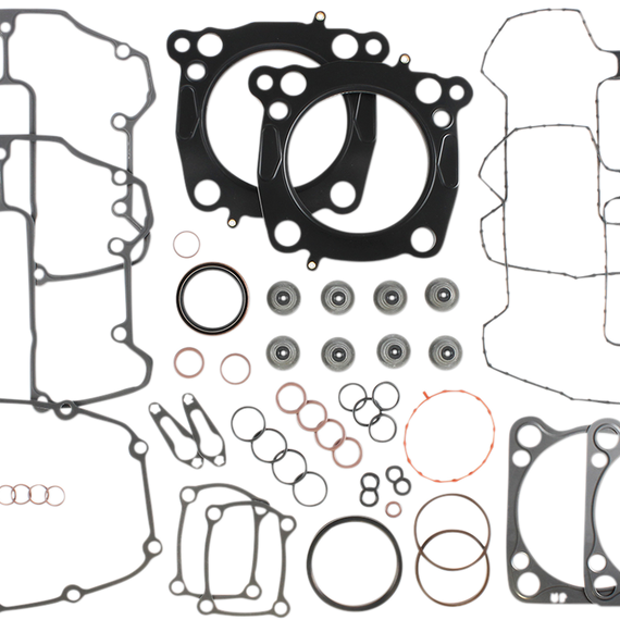 Caracteristicas: EST (Extreme Sealing Technology) gasket kits include embossed stainless steel head, base and rocker gaskets covered with a proprietary rubber material Head gasket material allows heat to be drawn away from the combustion ring and dissipated evenly across the gasket surface to eliminate hot spots and gasket failure Sets contain all the necessary gaskets, seals and O-rings to rebuild the top end from the cylinder base upward Made in the U.S.A.