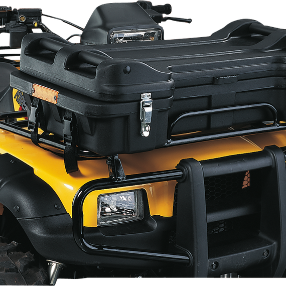 Caracteristicas: Made from easy-to-clean, high-impact-resistant polyethylene UV-stabilized Locking latches Side reflectors Quick-release tie-downs U-bolts for permanent mounting Foam hand grips Versatile top storage area 33" L x 17" W x 8" H