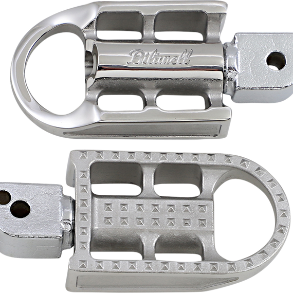 Caracteristicas: Just like the Sanderson footpegs, these feature investment-cast stainless steel construction Each peg attaches with a single Allen cap screw to an infinitely adjustable cast chromoly clevis Riders can easily fine-tune the angle of the textured surface relative to the bottom of their boots Pegs measure 2-1/8" wide by 3-1/2" long