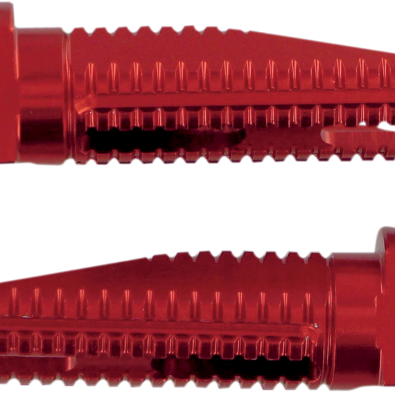 Caracteristicas: CNC-machined from 6061 T-6 billet aluminum; replace stock footpegs Lighter than stock, slash cut for greater ground clearance; have machined, not knurled, grooves for better grip