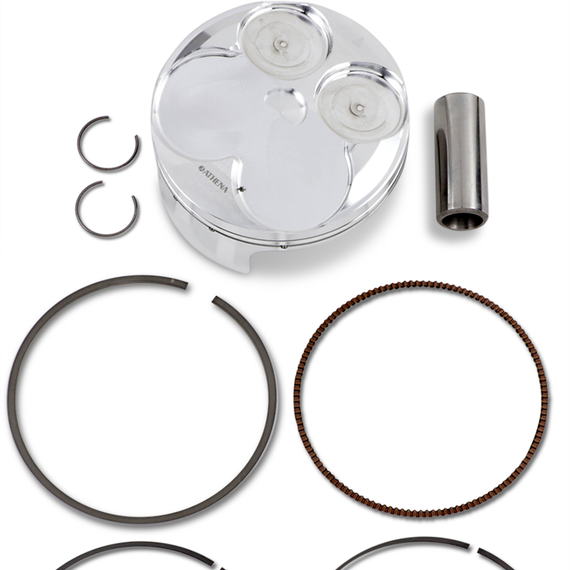 Caracteristicas: Two-stroke pistons are made from 4032 silicium Four-stroke pistons are made from 2618 silicium - the same material used to produce Formula 1 pistons Both include 3% copper in materials for better heat resistance All pistons are forged using a precision heat-treatment process that allows for production tolerances of just .005mm Forged piston tooling allows for the lightest available product Kits include antiwear coated piston, rings, pin and circlips