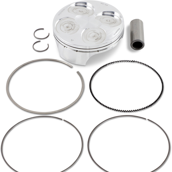 Caracteristicas: Two-stroke pistons are made from 4032 silicium Four-stroke pistons are made from 2618 silicium - the same material used to produce Formula 1 pistons Both include 3% copper in materials for better heat resistance All pistons are forged using a precision heat-treatment process that allows for production tolerances of just .005mm Forged piston tooling allows for the lightest available product Kits include antiwear coated piston, rings, pin and circlips