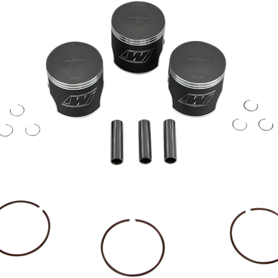 Caracteristicas: Complete engine kits include pistons, ring sets, pistons pins, retainer clips and head gasket All Wiseco pistons are forged from aerospace aluminum alloys on Wiseco's state-of-the art forging presses Built on a legacy of championships for over 60 years by American craftsmen Wiseco pistons have the latest dyno-tested technology to out-perform the competition