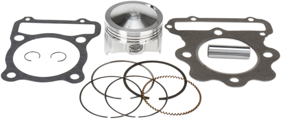 Caracteristicas: Most Wiseco 2-cycle pistons are forged from high-silicone bar stock Greater strength and lower expansion at high temperatures Complete piston kits include High-Performance forged pistons, rings, wrist pins, circlips and top-end gasket kit for one complete engine All Wiseco High-Performance pistons are priced with rings, wrist pins and circlips Wiseco ring types are not interchangeable (i.e., CD is not interchangeable with LC) and fit only Wiseco pistons WARNING: Wiseco pistons can be fitted only with Wiseco rings.
