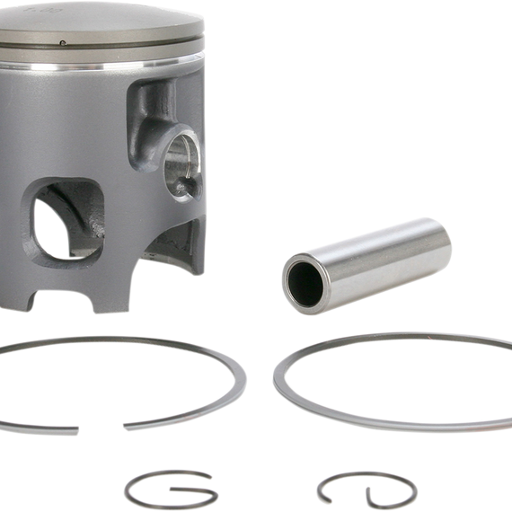 Caracteristicas: Quality and construction that meets or exceeds OEM Feature improved E-clip design Contain piston, rings, pin and clips Additional rings available separately Order one per cylinder Skirts have a nonabrasive, expansion-retarding MOS2 coating to reduce heat and friction for added power and longevity MOS2 coating actually draws heat through piston walls and out the bottom Specially hardened tops add strength to ring grooves
