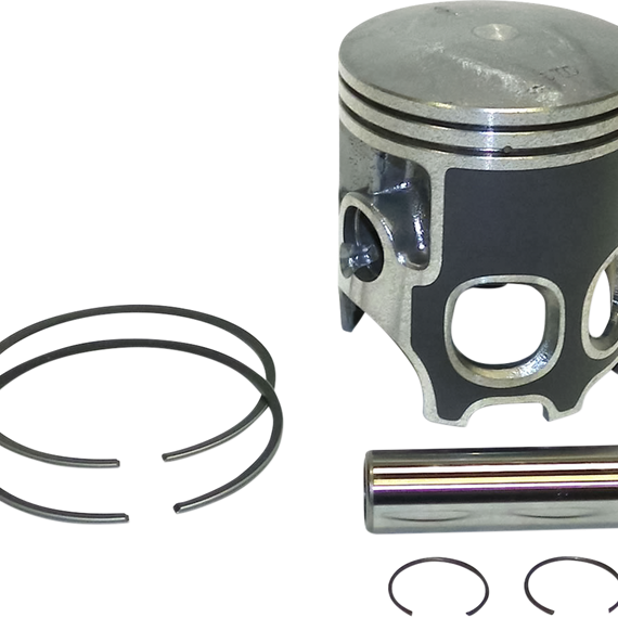 Caracteristicas: Quality and construction that meets or exceeds OEM Feature improved E-clip design Contain piston, rings, pin and clips Additional rings available separately Order one per cylinder Skirts have a nonabrasive, expansion-retarding MOS2 coating to reduce heat and friction for added power and longevity MOS2 coating actually draws heat through piston walls and out the bottom Specially hardened tops add strength to ring grooves