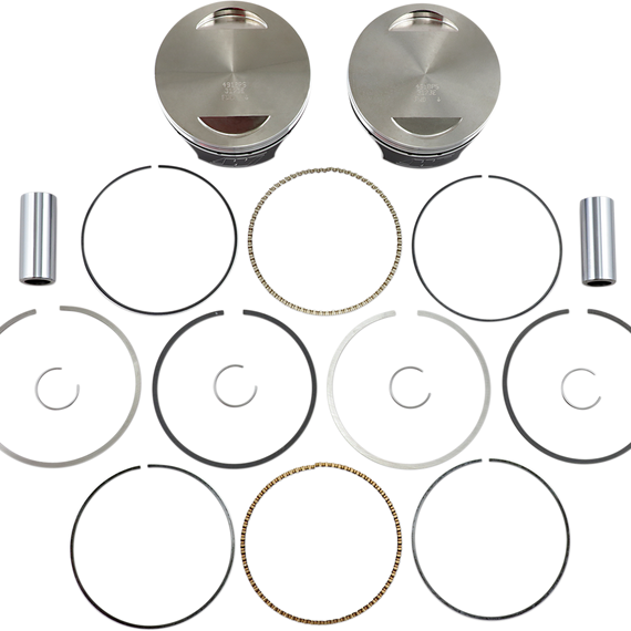 Caracteristicas: Wiseco's high-tech manufacturing ensures greater operating strength and lower expansion at high temperatures Kits include forged pistons with ArmorGlide™ coated skirts, rings, retainer clips, and chrome piston pins Twin Cam pistons have ArmorPlating which improves ring seal, eliminates ring micro-welding, and improves the piston's ability to defend against detonation damage Pistons are made in the U.S.A. Replacement rings include rings for one piston only. Wiseco pistons that use VM-rings can only be fitted with Wiseco VM-rings; Wiseco pistons that use XC-rings can only be fitted with Wiseco XC-rings.