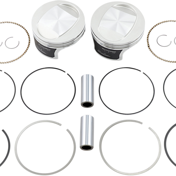 Caracteristicas: Forged piston crown with generous valve pockets for big valves and cams Precision-fit rings selected for each application for ultimate sealing Force-fed pin oiling provides enhanced lubrication of the piston pin Pressure seal groove reduces ring lifting and power loss ArmorGlide® skirt coating reduces friction, providing quieter operation and improving scuff resistance Valued-packaged with two pistons, rings, piston pins and circlips Made in the U.S.A