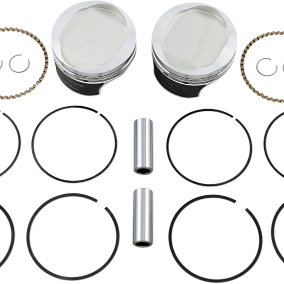 Caracteristicas: Forged piston crown with generous valve pockets for big valves and cams Precision-fit rings selected for each application for ultimate sealing Force-fed pin oiling provides enhanced lubrication of the piston pin Pressure seal groove reduces ring lifting and power loss ArmorGlide® skirt coating reduces friction, providing quieter operation and improving scuff resistance Valued-packaged with two pistons, rings, piston pins and circlips Made in the U.S.A
