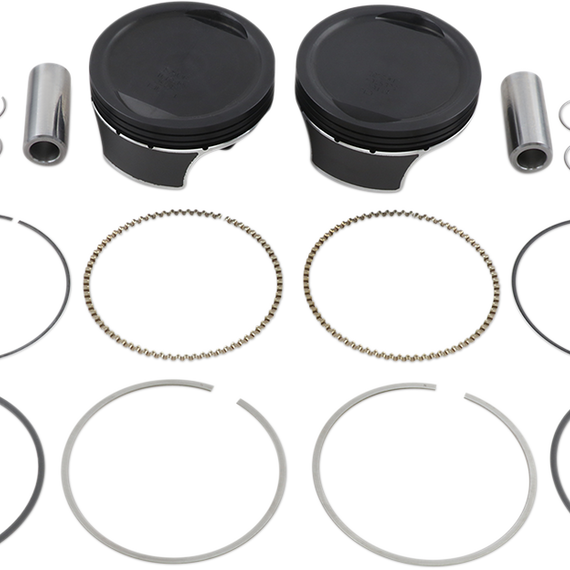 Caracteristicas: Wiseco's high-tech manufacturing ensures greater operating strength and lower expansion at high temperatures Kits include forged pistons with ArmorGlide™ coated skirts, rings, retainer clips, and chrome piston pins Twin Cam pistons have ArmorPlating which improves ring seal, eliminates ring micro-welding, and improves the piston's ability to defend against detonation damage Pistons are made in the U.S.A. Replacement rings include rings for one piston only. Wiseco pistons that use VM-rings can only be fitted with Wiseco VM-rings; Wiseco pistons that use XC-rings can only be fitted with Wiseco XC-rings.