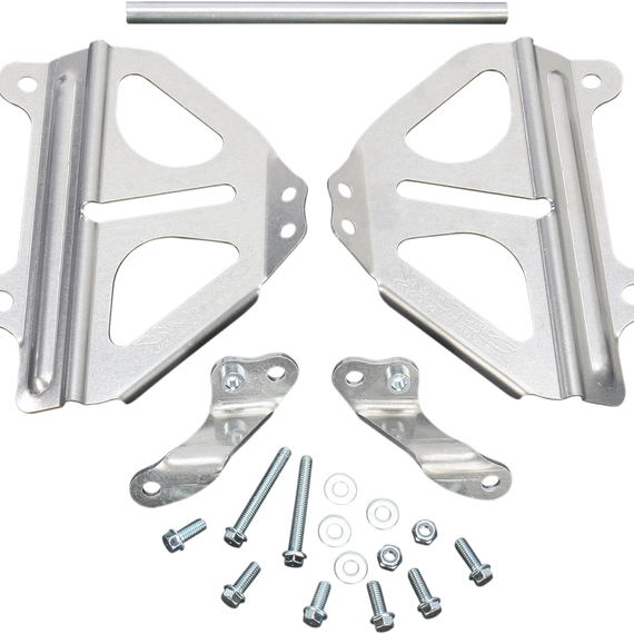Caracteristicas: CNC-machined from aircraft grade 5052 aluminum Reinforces radiators to help prevent costly radiator replacement Lightweight, custom fit, tuck in cleanly behind radiator shrouds Simple bolt-on All necessary mounting hardware included Made in the U.S.A.