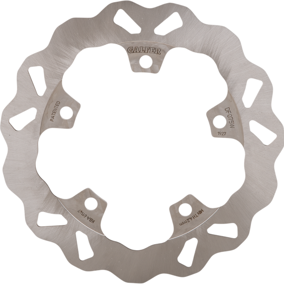 Caracteristicas: Laser-cut double disc ground 420 high carbon stainless steel Direct-replacement brake rotors; do not require any extra parts, bolt on just like a stock brake disc Full-floating design rotors have an aluminum center carrier Improves brake lever feel and modulation Rotors cool as they rotate to lower brake operating temperatures Design is self-cleaning, removes water as it rotates Less tendency to warp Manufactured in Spain For maximum braking performance and rotor longevity, Galfer recommends using Galfer brake pads with Galfer rotors.
