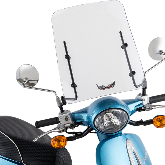 Caracteristicas: Manufactured out of .150 Lucite acrylic Mounts securely to mirrors using anodized aluminum and powder-coated steel hardware Fits most scooters with 8mm mirror threads Made in the U.S.A.