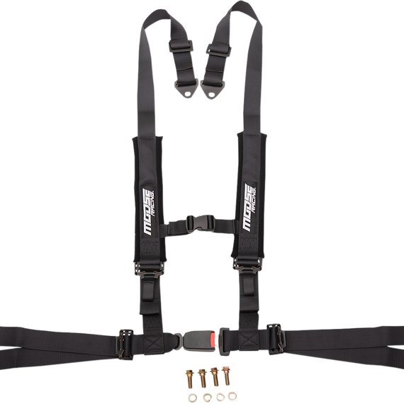 Caracteristicas: Four point restraint system 2” wide straps for comfort and safety Extra-large padded chest/shoulder straps Easy adjustment and release of the shoulder and lap straps Single click automotive buckle for easy entry and exit Integrated chest buckle to keep the straps in place on your shoulders Universal bolt in or loop over roll cage installation for most UTV’s.