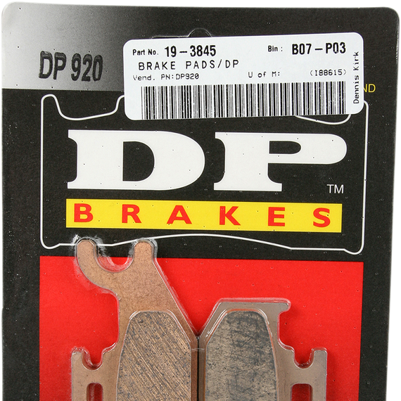 Caracteristicas: DP Brakes Brake Pads are designed with sintered metal compounds to give your ATV high-tech performance in all conditions Pads have a quick break-in period so you get maximum performance fast DP Brakes design and materials ensure consistent, hard stops and fade-free performance Sintered metal compounds outlast more conventional organic or aramid fiber pads Use DP Brakes Rotors in conjunction with DP Brakes Brake Pads for the ultimate in braking performance GG-friction rated and made with DP Brakes' proven sintered-metal material Gray-colored aluminum oxide-based ceramic material on rear of back plate keeps heat away from caliper piston and fluid in extreme conditions for fade-free performance Pad compound gives equal performance in wet or dry conditions The ideal replacement pad where durability is the prime requirement TUV/KBA approved to EEC braking regulation 13/05 Bright, attractive pegboard packaging