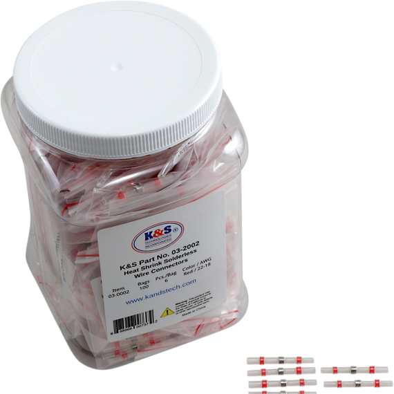 • Low-heat solder melts with just a heat gun and shrinks the tubing for a watertight seal