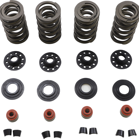 Caracteristicas: Spring kit is designed with increased spring rates and high lift compatibility compared to the stock springs Compatible with boosted or turbocharged applications CNC-machined titanium retainers and Cr-Si dual springs provide valvetrain control at high rpms with high-performance camshaft capability Kit includes 12 titanium retainers, 12 CrSi Valve Springs and 12 H.T. Steel Basewashers