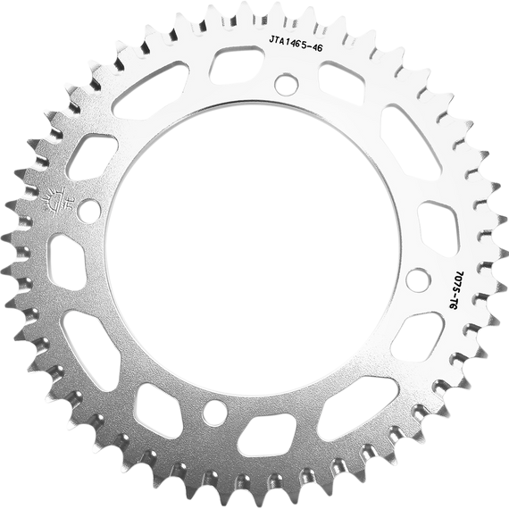 Caracteristicas: Computer designed to achieve ultimate strength at minimum weight JT combines leading-edge technology with top materials to produce the ultimate quality sprocket range with unbeatable value Every sprocket meets or exceeds the highest possible quality standards Sprockets are heat-treated and beadblasted to reduce material surface tension Front sprockets are made with top-quality Japanese C45 high carbon steel and SCM415 chromoly steel alloy Steel rear sprockets are made with top-quality Japanese C45 high carbon steel Aluminum rear sprockets are made with high strength Austrian 7075 T-6 anodized aluminum JT aluminum sprockets are about 30% lighter than a comparable steel equivalent, which reduces un-sprung rotating weight and improves performance