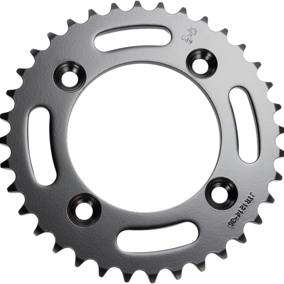 Caracteristicas: Computer designed to achieve ultimate strength at minimum weight JT combines leading-edge technology with top materials to produce the ultimate quality sprocket range with unbeatable value Every sprocket meets or exceeds the highest possible quality standards Sprockets are heat-treated and beadblasted to reduce material surface tension Front sprockets are made with top-quality Japanese C45 high carbon steel and SCM415 chromoly steel alloy Steel rear sprockets are made with top-quality Japanese C45 high carbon steel Aluminum rear sprockets are made with high strength Austrian 7075 T-6 anodized aluminum JT aluminum sprockets are about 30% lighter than a comparable steel equivalent, which reduces un-sprung rotating weight and improves performance