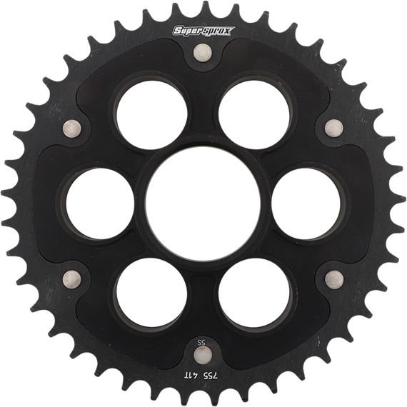Caracteristicas: Supersprox-Stealth gives you longer system life without compromising weight Steel teeth last 4 times longer than aluminum Pound-for-pound, the strongest sprocket on the market The aluminum core is 70% lighter than steel Forging rivets into the sprockets provide exceptional strength Designed for bikes up to 1400cc in displacement