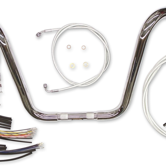Caracteristicas: The only complete Handlebar Kits with matching braided cables and brake lines that include Magnum Caliber Handlebars Magnum 1-1/4" Caliber handlebars are manufactured with the highest quality construction, including machined control mounts (not swaged) and feature high luster finish for an unsurpassed appearance All handlebars are 1-1/4" diameter with 1" diameter center section and 3-1/2" on-center knurling, work with standard controls, including hydraulic clutch, and are machined for internal wiring and electric throttle control All Caliber Handlebars are preloaded with E-Z pull-thru sleeving to make wiring installations a breeze Kits include: Magnum 1-1/4" Caliber Handlebars, throttle and idle cables or throttle-by-wire extensions, a clutch cable or hydraulic clutch line, brake lines, copper crush washers, hardware, and any necessary switch wiring or turn signal extensions All cables are a low effort, high efficiency design that meets or exceeds all OE specifications for fitment, construction, endurance Kits for dual disc models include an all brazed manifold that eliminates leaks, alignment problems, and unattractive threaded connections Brake lines exceed all DOT FMVSS-106 requirements Assembled in the U.S.A. Caliber Handlebars have a 1" diameter center section and fit 1" risers. Models originally equipped with handlebars that have a center section diameter larger than 1" will require changing the risers to a 1" ID version. Examples would be, but not limited to FLSTF, FLSTFB and CVO models. Please check before ordering.