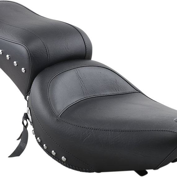 Caracteristicas: Front bucket is trimmed with a functional skirt that comes down over the frame and fender for a clean, uninterrupted look Studded Naugahyde cover is trimmed with conchos tied with leather Vintage cover is made from highest quality expanded vinyl Passenger seat angles forward to support the rider's back Built on a single-piece steel base that fits like stock Made in the U.S.A.